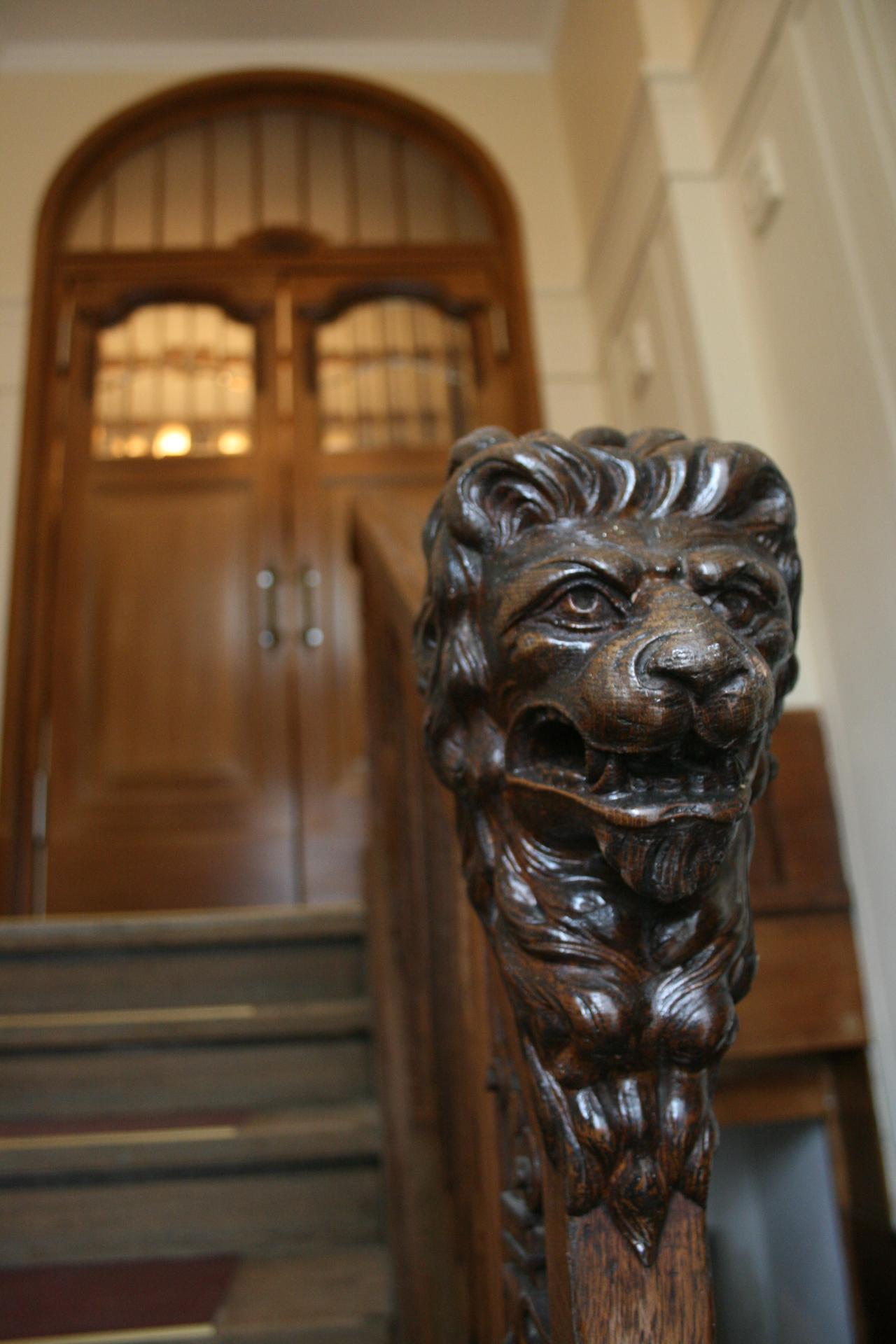 denkmalgeschützte Wandvertäfelung des Treppenhauses;
