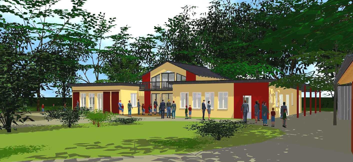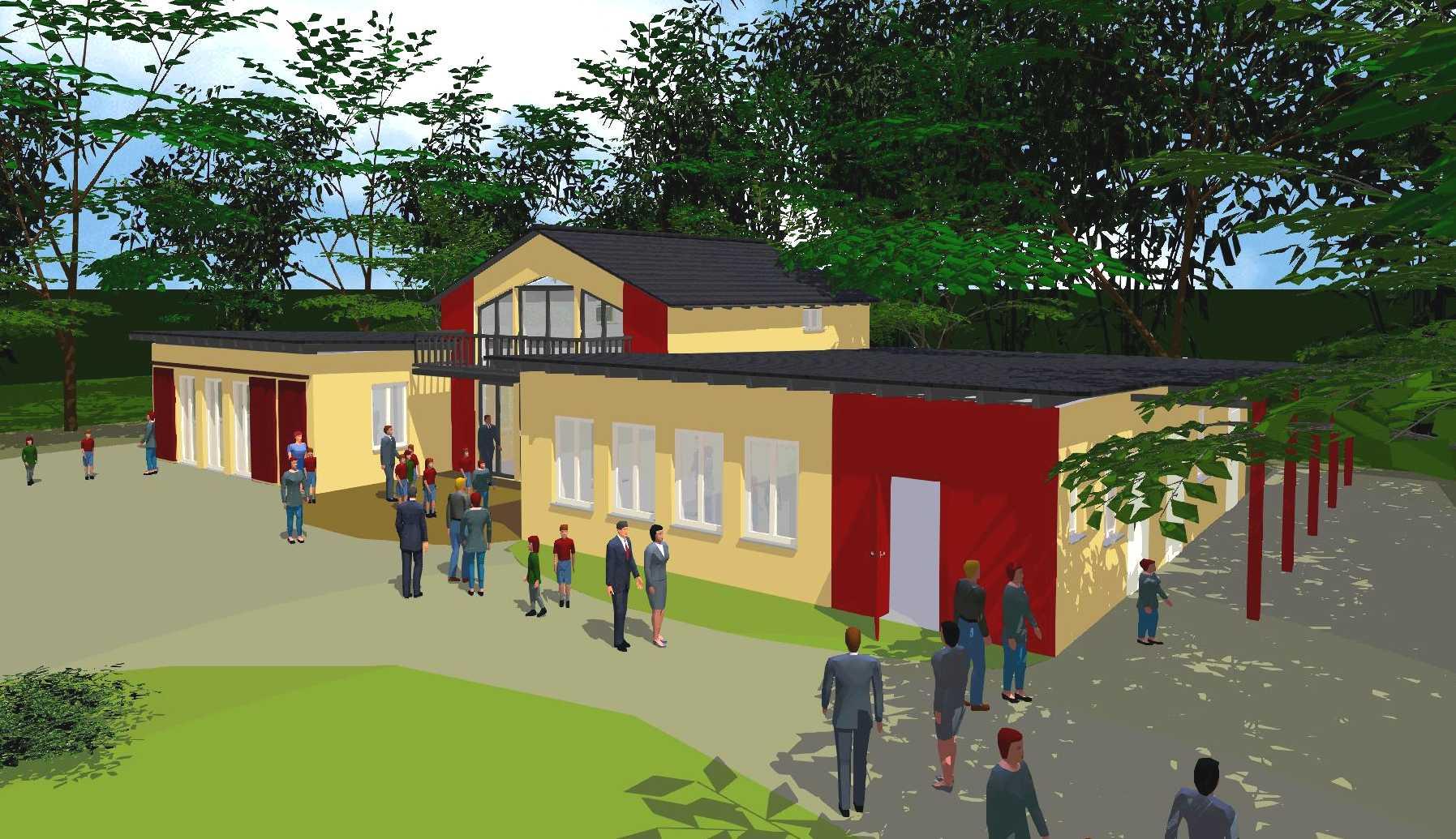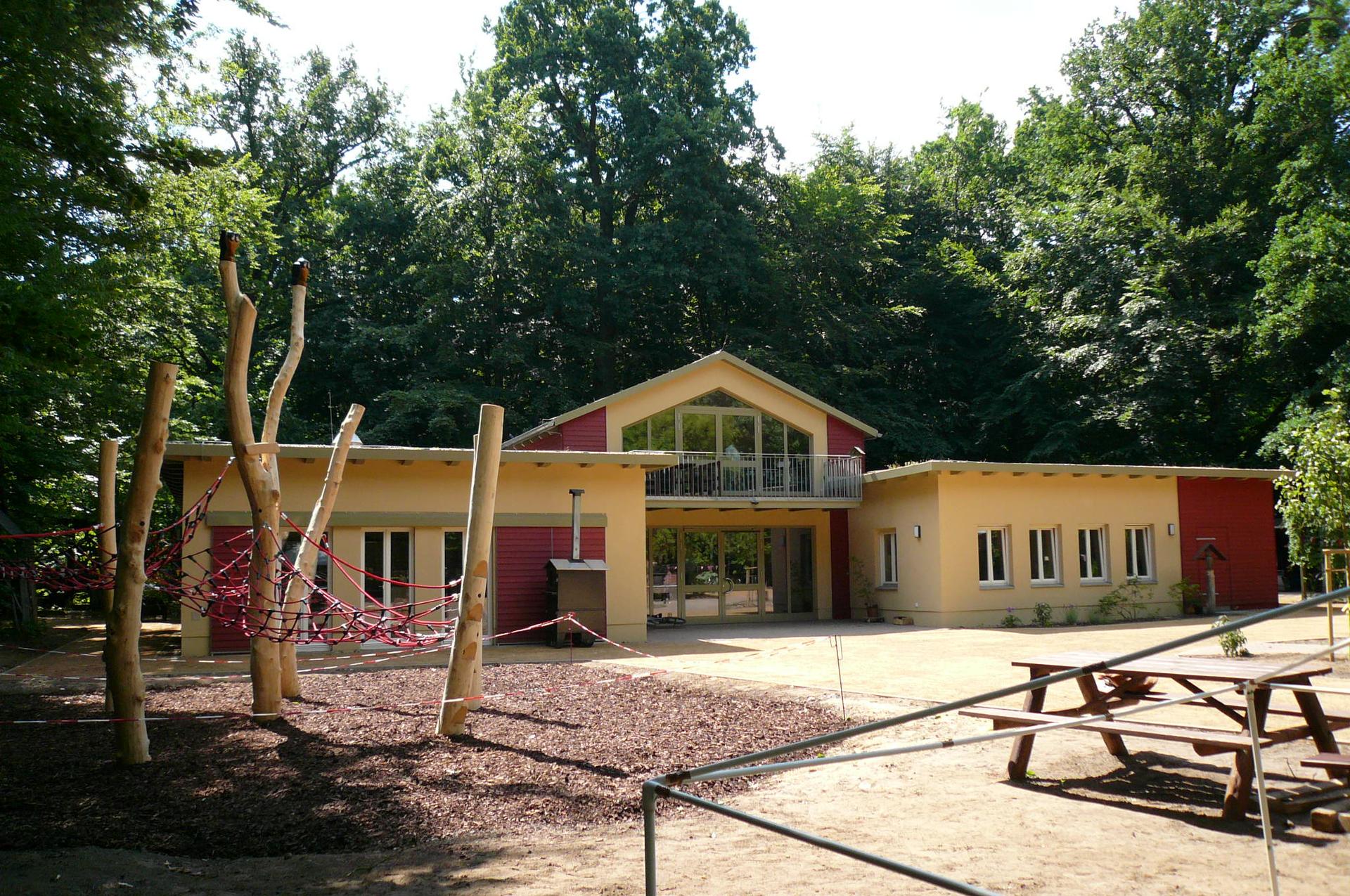 Abbruch des alten Asbestgebäudes; Neubau eines Naturschutzzentrums mit Schulungsräumen, einer Lehrküche, einer Holzwerkstatt, einer Tieraufnahme- und Pflegestation mit Quarantäneraum, Büro- und Beratungsräume