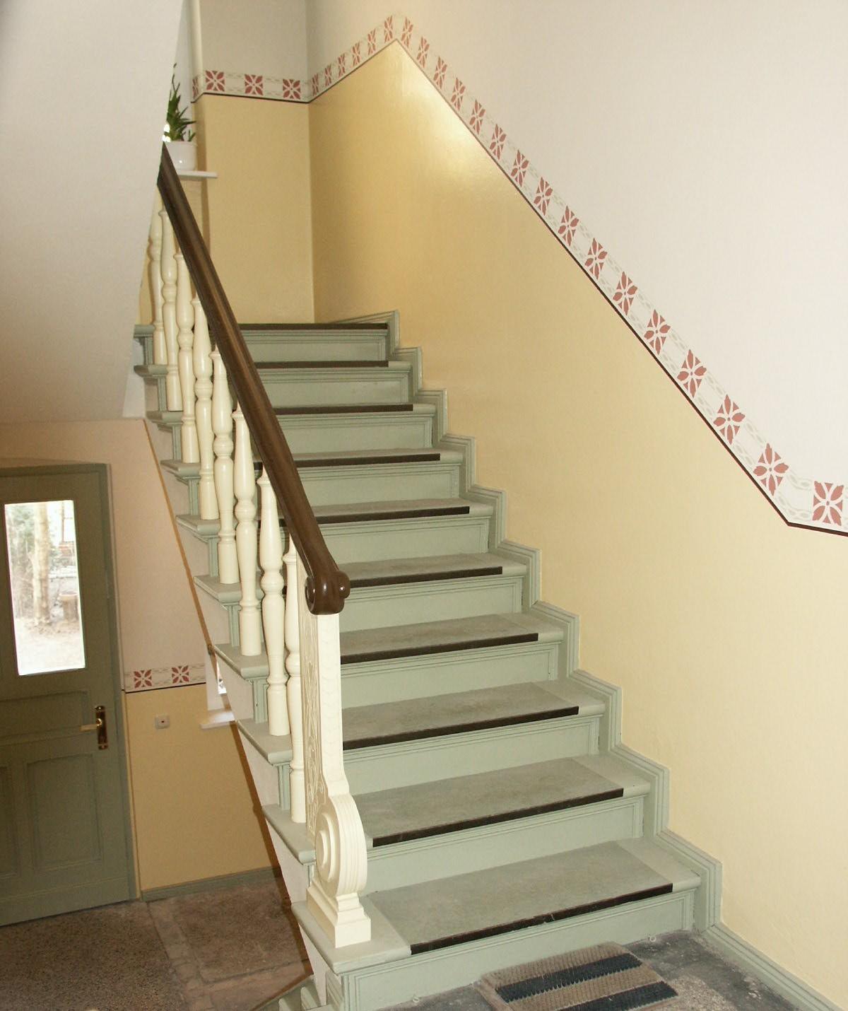 Wiederherstellung der Schablonenborte im Treppenraum nach Originalbefund;
