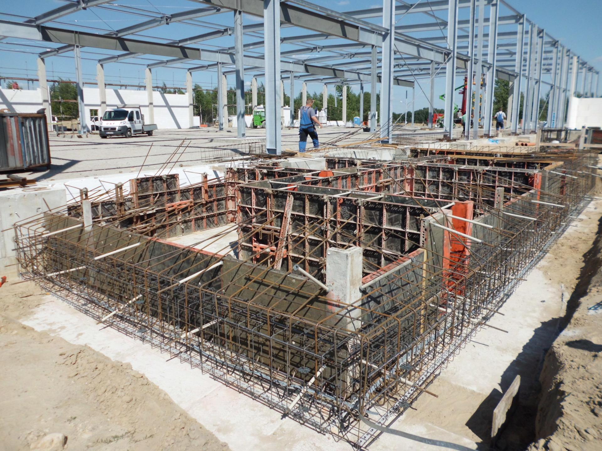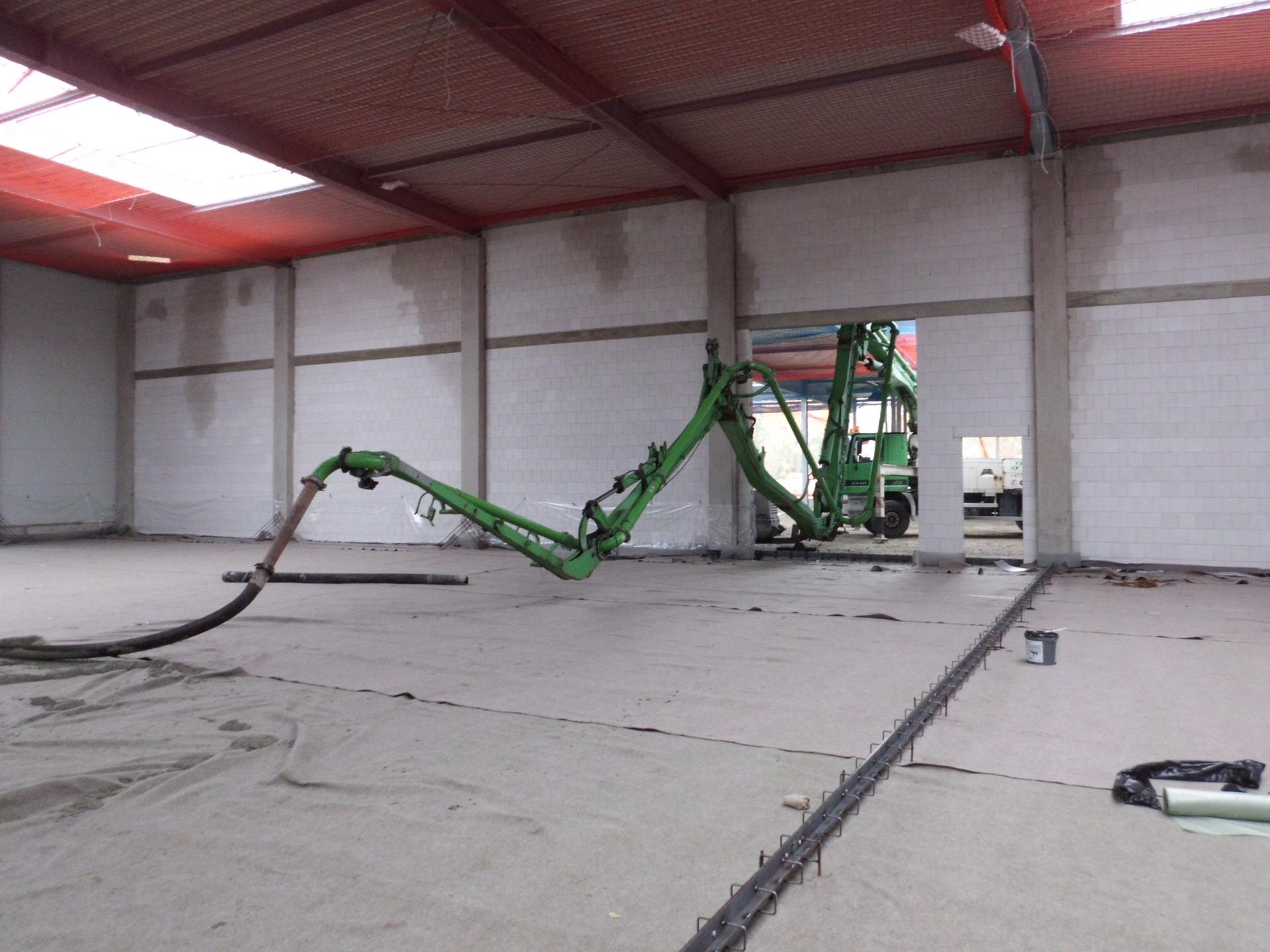 Produktion und Lager mit oberflächenfertiger Bodenplatte aus 20 cm Stahlfaserbeton mit Hartkornestrich