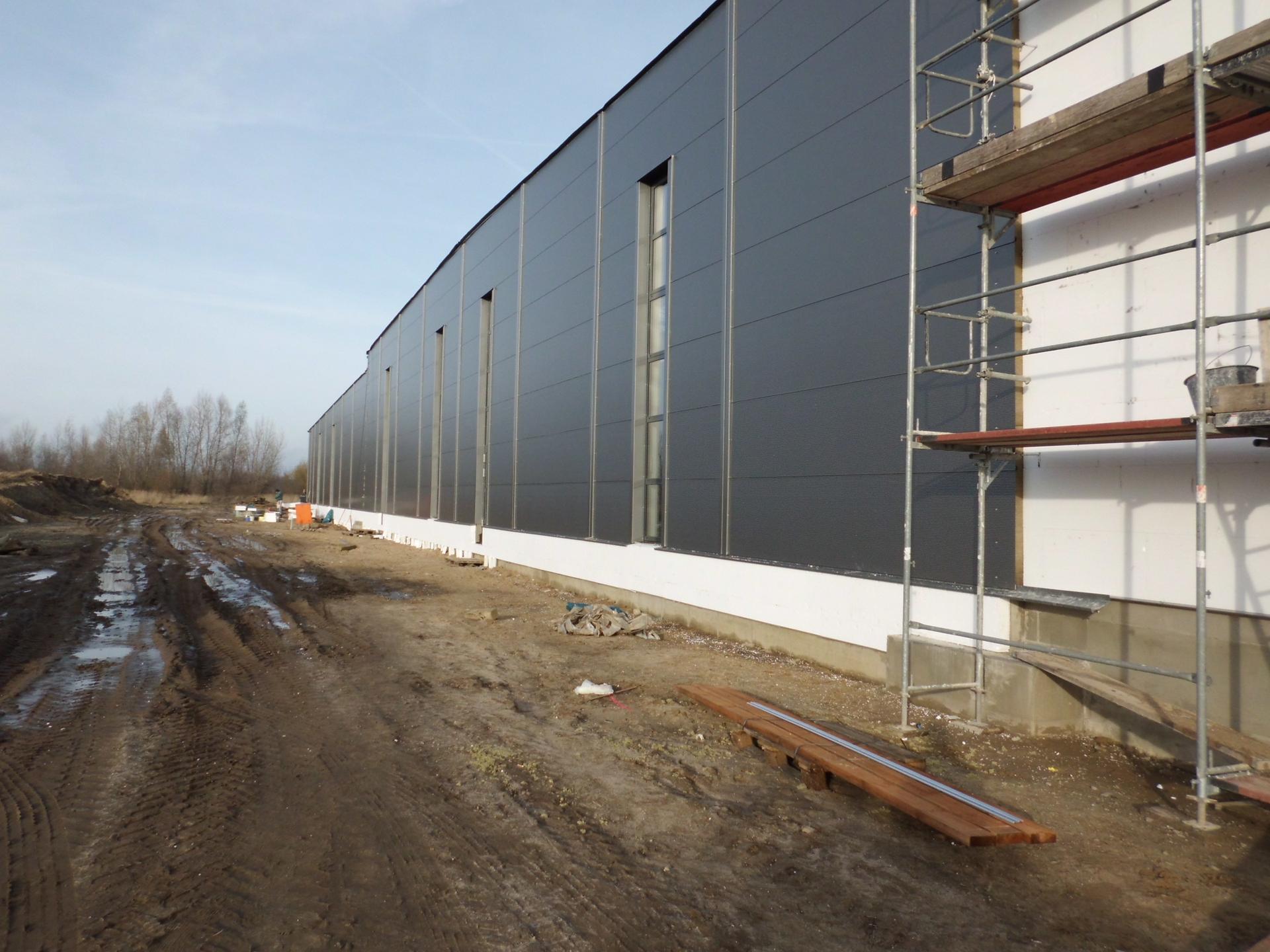 Produktionshalle, Lager und Auslieferung in Stahlskelettbauweise mit 170 mm mineralfasergedämmten Sandwichpaneelen