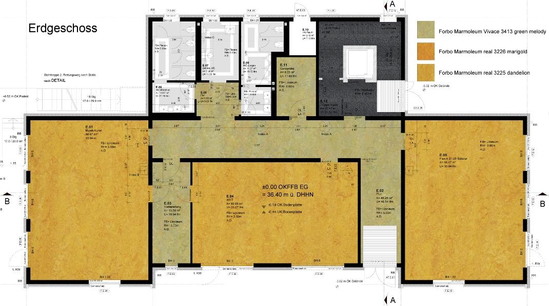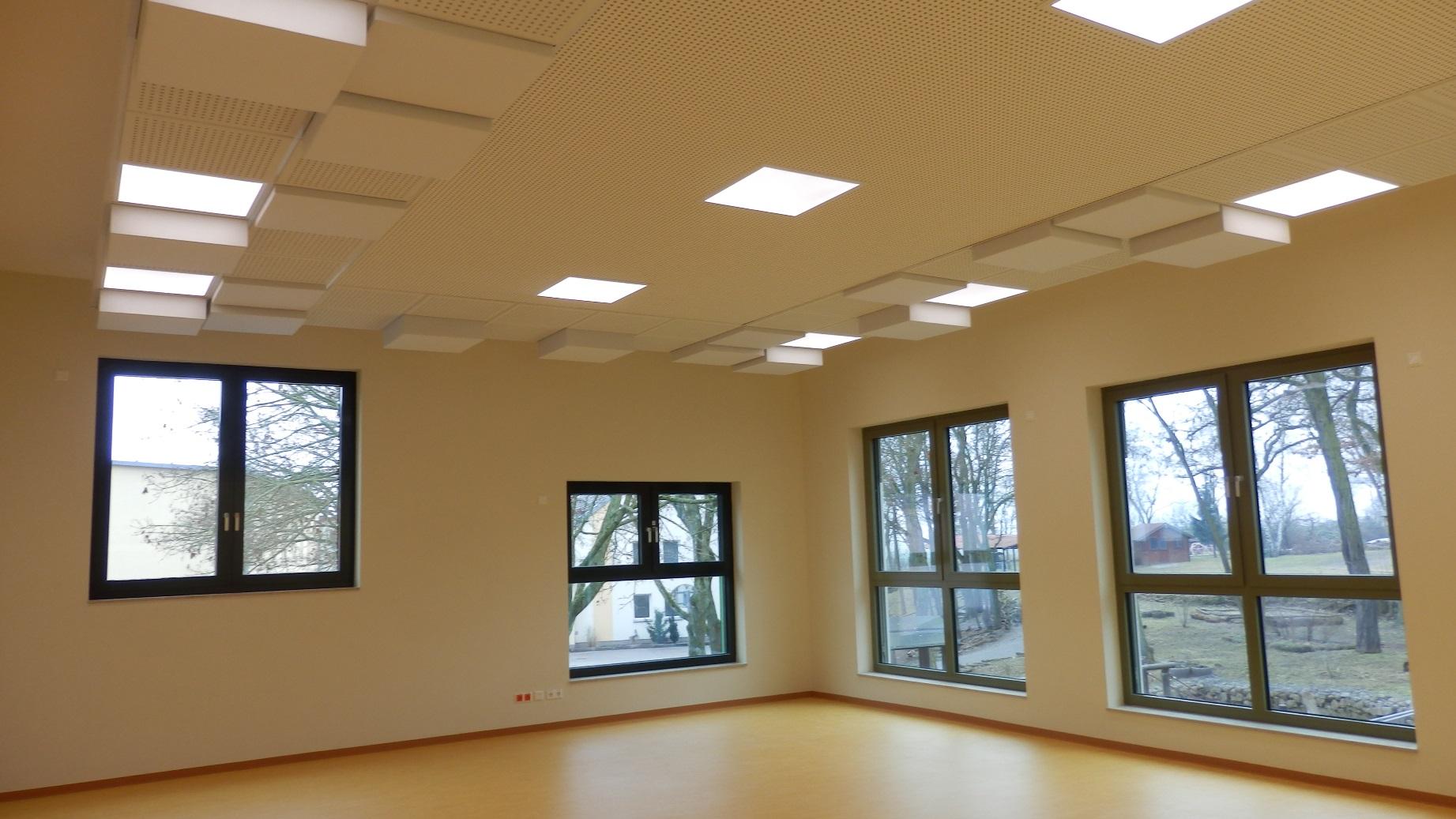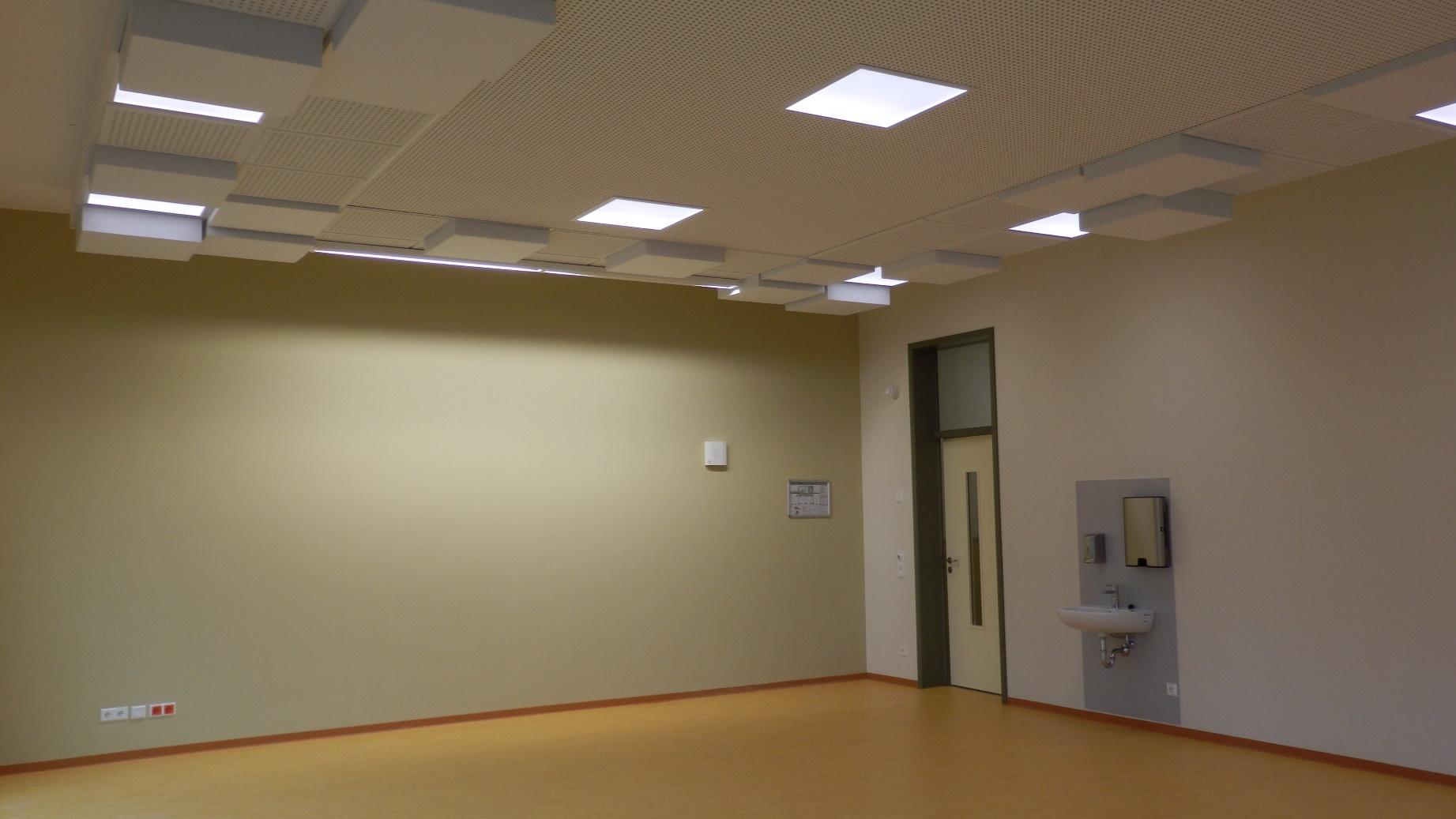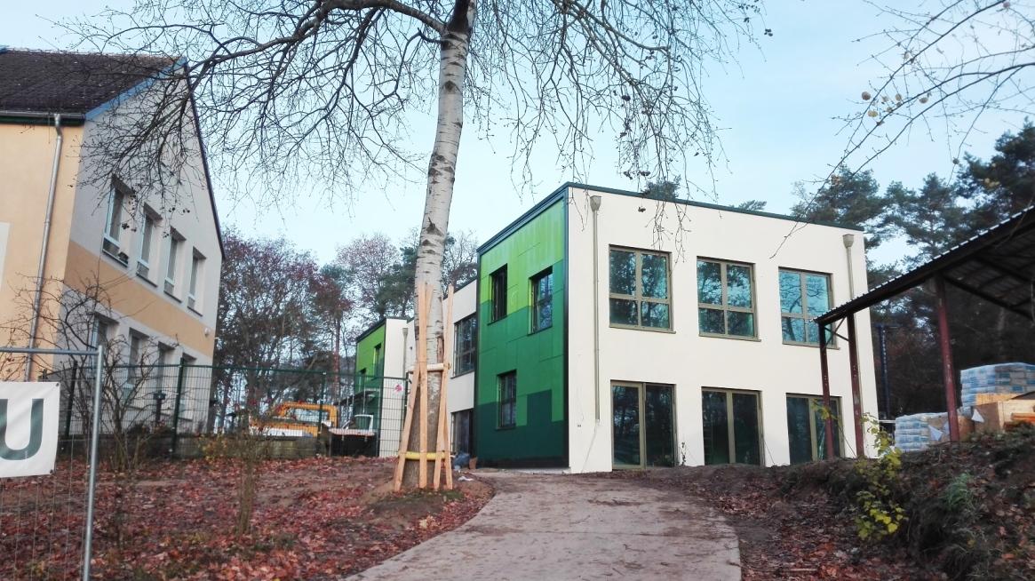 Neben dem bestehenden Schulgebäude wird auf dem Schulgelände ein separater Neubau über 2 Geschosse errichtet, mit 3 Flex-Klassenräumen, einem Fachraum für Musik/ Kunst, einem WAT-Raum und einem Teilungsraum, der bei Bedarf durch eine halbautomatische Schiebewand in zwei Räume gegliedert werden kann. Desweiteren beinhaltet der Neubau die WC-Anlagen und Vorbereitungsräume.
