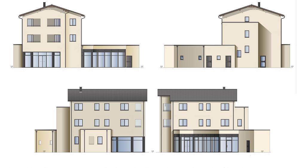 Weiterhin ist eine Außenanlagengestaltung mit Freisitzflächen geplant, sowie 14 PKW-Stellflächen auf der Südseite des Gebäudes.