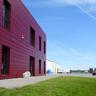 Das Verwaltungsgebäude ist als Massivbau aus Kalksandstein-Mauerwerk und Stahlbeton mit vorgehängter Steckpaneel-Metallfassade im Farbton des Unternehmens ausgeführt.