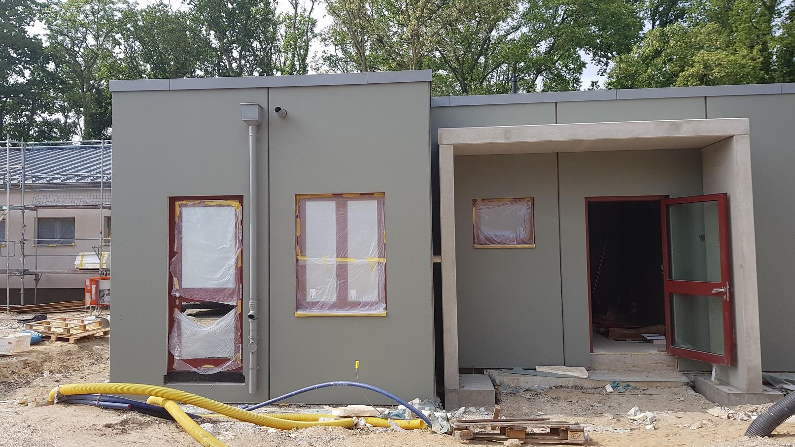 Die Umfassungswände des Ausbildungs- und Schulungsbereiches werden Mauerwerkswände mit Wärmedämmung.