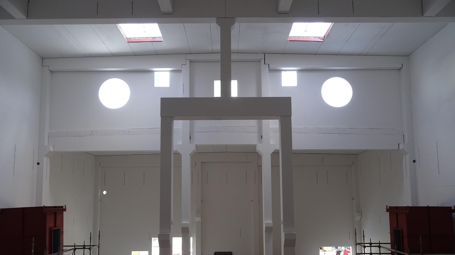 Das Gebäude besteht aus einem 3-geschossigen Kopfbau aus Stahlbetonwänden und -decken und einer Halle aus einer Stützen-Riegel-Konstruktion aus Stahlbeton mit Stahlbetonwänden.