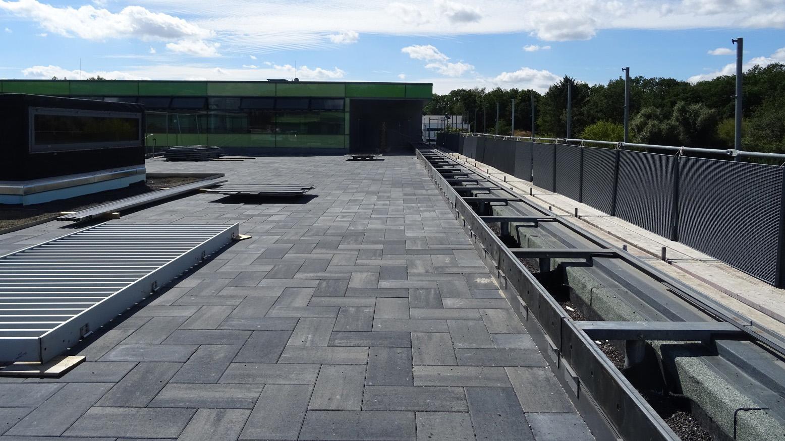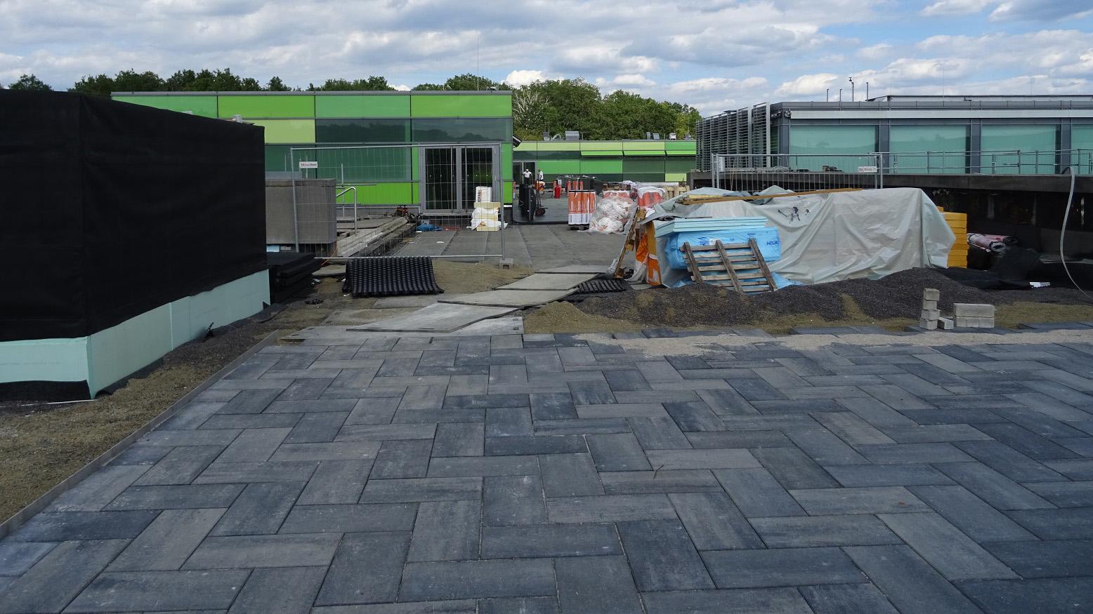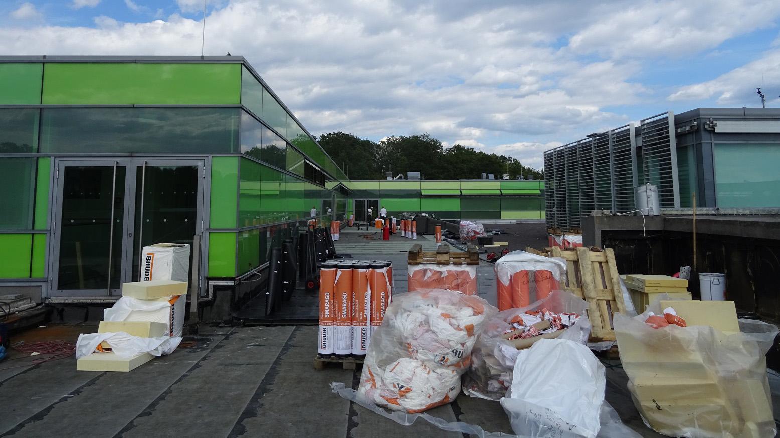 Planung und Bauleitung einer Dachabdichtungserneuerung auf Grund nicht lokalisierbarer, massiver Undichtigkeit. Dazu wurde ein Flachdachsystem geplant und ausgeführt, bei dem die Abdichtungsschichten und der Wärmedämmstoff untereinander und mit dem Untergrund kompakt verklebt sind.