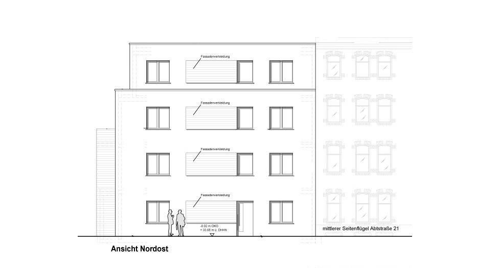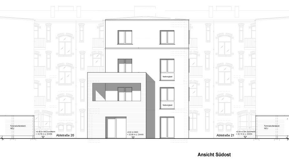 Es entstehen drei Wohneinheiten auf 4 Etagen mit zweimal 100m² und einmal 180m² Wohnfläche.