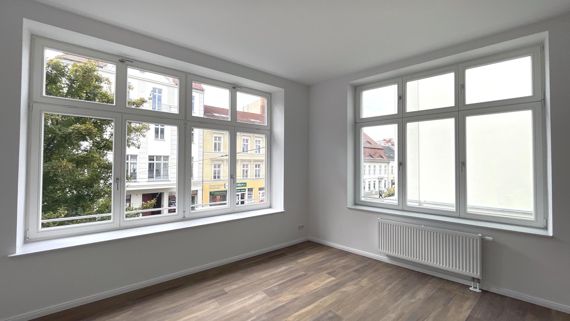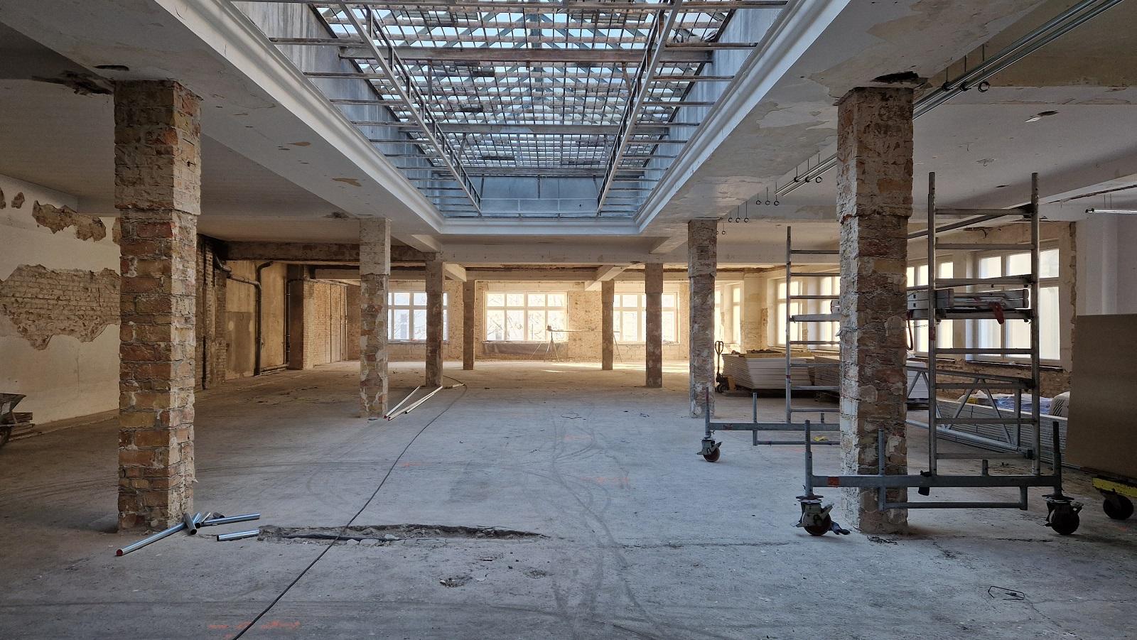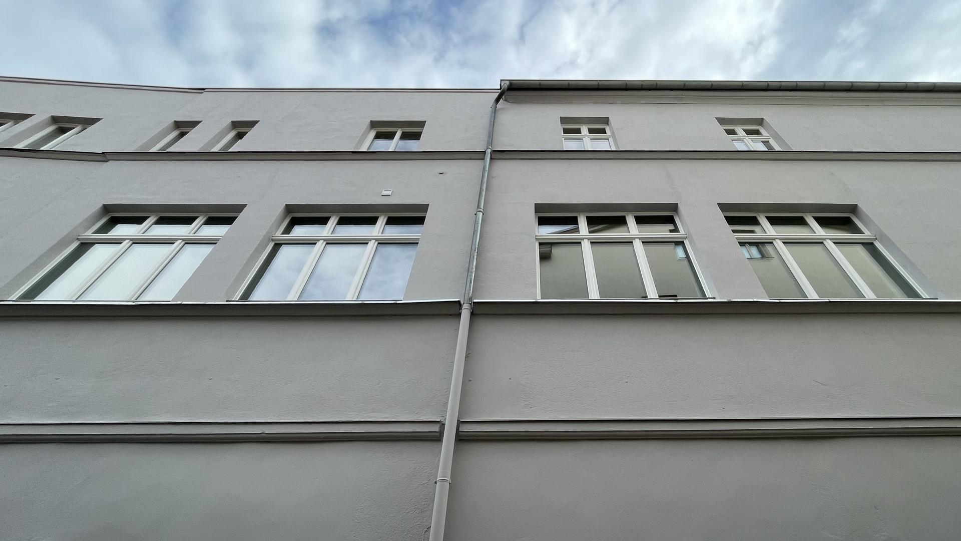 Die Nutzungsänderung von Büro- in Wohnräume des 1. Obergeschosses schließt die Sanierung der Räume ein und wird unter vermieteten und genutzten Zustands des Erdgeschosses mit zwei Geschäften durchgeführt. Es entstehen 4 Wohneinheiten mit 98 bis 135 m² Wohnfläche.